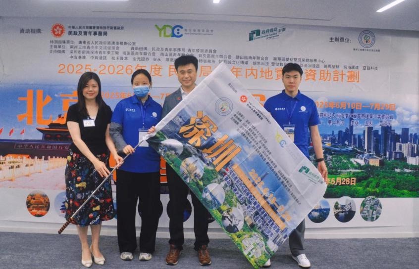 活動現場,還舉行了莊重的授旗儀式。中央政府駐港聯絡辦青年工作部副處長陳觀興、全國人大前常委譚耀宗為北京代表團授旗;港區全國人大代表黃冰芬和前海深港青年夢工場產業事業部副部長郭瑋強為深圳代表團授旗。接過旗幟,代表著責任與使命,也承載著對實習之旅的期待。