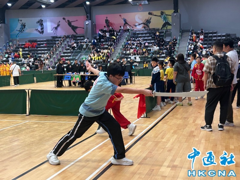 香港中通社6月1日電(記者 徐嘉儀)慶祝香港回歸祖國28周年“包容盃”校際武藝操大賽6月1日在香港元朗體育館舉行,500餘名香港中小學生現場切磋武藝,傳承中華文化。