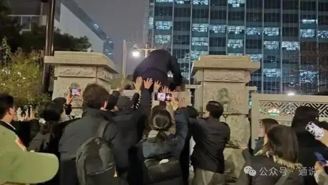 絕食19天的李在明(圖片來源:韓聯社) 2024年1月,李在明在釜山一個規劃的機場工地外回答記者提問時,被一名前來索要簽名的男子刺傷頸部,傷口深達1.4厘米,頸內靜脈60%損傷。術後僅8天,李在明便出院并呼籲“終結仇恨政治”;一周後,李在明重返工作崗位,未因傷休養延期。 2024年12月3日深夜,時任總統尹錫悅宣布全國戒嚴三小時後,61歲的李在明開啟直播,翻過三米高的首爾國會大廈警戒牆,吸引170萬人在線圍觀。當渾身塵土的他出現在國會大廳時,現場議員集體起立鼓掌,這場行動被韓媒稱為“韓國版攻佔國會山”,不僅讓尹錫悅的戒嚴令在72小時內流產,更將李在明推向了焦點。