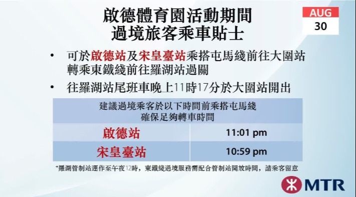 演唱會將於下午4時開始安檢,並於下午5時開放入場。主辦方提醒,為準備好輕鬆的心情欣賞節目,參加者請提前規劃行程,並預留足夠時間進行驗票及安檢。入場人士請留意當日的天氣情況,建議穿著輕便舒適的服裝,並請遵守場地規則,注意攜帶物品的限制,包括攝影器材、平板電腦、任何尺寸的發光支持牌及應援物、長傘、以及超過600毫升的塑料或硅膠水瓶/杯等,均不可帶入場內。容量不超過600毫升的塑料或硅膠水瓶/杯雖然可以入場,但記得不可以附有瓶/杯蓋及任何液體。 活動期間,體育園附近一帶的交通預期會較繁忙,觀眾應乘搭公共交通工具,避免駕駛或乘搭私家車。參加活動人士除可使用便捷的鐵路網絡往返體育園外,亦可乘搭途經太子道東、馬頭角道或承啟道的多條巴士及小巴路線往返體育園至港九新界各區。 的士方面,主場館的士上落客區(H閘外地面)將開放供的士上落客。此外,觀眾亦可於可於啟德體藝館的士站或宋皇臺道上落客區落車。散場時,觀眾請於主場館H閘外乘坐扶手電梯到G層的士上落客區乘搭的士。啟德體藝館的士站及宋皇臺道上落客區將不設的士上客服務。使用私家車前往園區的人士,可於啟德青年運動場落車(只供到場落車,散場時不開放上客),或於土瓜灣馬頭角道的指定地點上落車。 港鐵最後一班往羅湖列車,將於晚上10時59分從宋皇臺站及11時01分從啟德站開出。專營巴士公司將於宋皇臺道上落客區提供共11條特別巴士路線分別前往落馬洲(新田)公共運輸交匯處、港珠澳大橋香港口岸和機場,以及港九新界各主要地區。旅客如欲乘坐跨境巴士前往內地城市,請提前在有關跨境巴士營辦商的網站或相關手機應用程式購買車票。散場後於主場館二樓H閘外經扶手電梯到地面的上落客區登車。 (完) 【編輯:梁嘉軒】