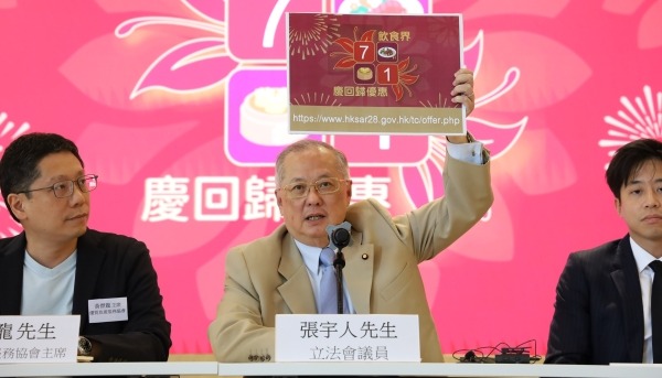 香港飲食業聯合總會聯同多家餐飲集團,25日主辦“飲食界7.1慶回歸優惠活動2025”,3800家香港餐廳推優惠慶“七一”。(香港中通社圖片) 本次活動規模空前,自由黨飲食界立法會議員張宇人表示,若香港市民在“七一”期間不留港消費,“將是一種損失”;他也歡迎內地旅客趁著香港慶祝回歸28周年的大日子來港消費。 最新參與的餐廳名單長達67頁,其中麥當勞、美心MX、大家樂快餐、太興、富臨酒家等餐廳推出多種優惠,供市民歡度回歸紀念日。本地連鎖便利店也推出多項商品七一折優惠。 雖然過往的“七一”優惠也為飲食企業帶來生意上增長,張宇人強調,活動的初衷並不是經濟上的利益,而是希望大家有一個高興心情,一起慶祝回歸28周年。(完) 【編輯:李冉】