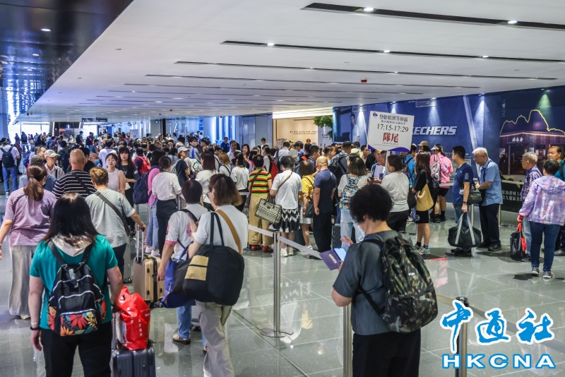 6月27日,全新升級的麗星郵輪旗下“領航星號”正式抵達香港, 以這個國際級郵輪樞紐為母港,開啟2025年郵輪航季。即日起至 11月14日,“領航星號”將以位於市中心的海港城海運碼頭為母港,推出45個往返航次,提供2晚、3晚及5晚的行程,帶領旅客探索東亞及東北亞最具魅力的旅遊目的地。圖為旅客排隊登船。(香港中通社記者 曹文毓攝) 香港中通社圖片