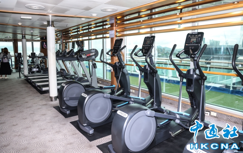 6月27日,全新升級的麗星郵輪旗下“領航星號”正式抵達香港, 以這個國際級郵輪樞紐為母港,開啟2025年郵輪航季。旅客可入住客房或升級皇宮套房,體驗船上多元設施,包括探索樂園、攀岩牆、高空滑索以及各類現場表演。同時,郵輪上亦會舉辦國際級娛樂活動,包括紅毯之夜、季節主題及泡泡狂歡派對等,並提供健身室、桑拿房、娛樂場以及兒童俱樂部,滿足不同年齡段旅客的需求。圖為健身室。(香港中通社記者 曹文毓攝) 香港中通社圖片