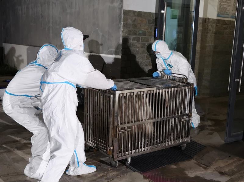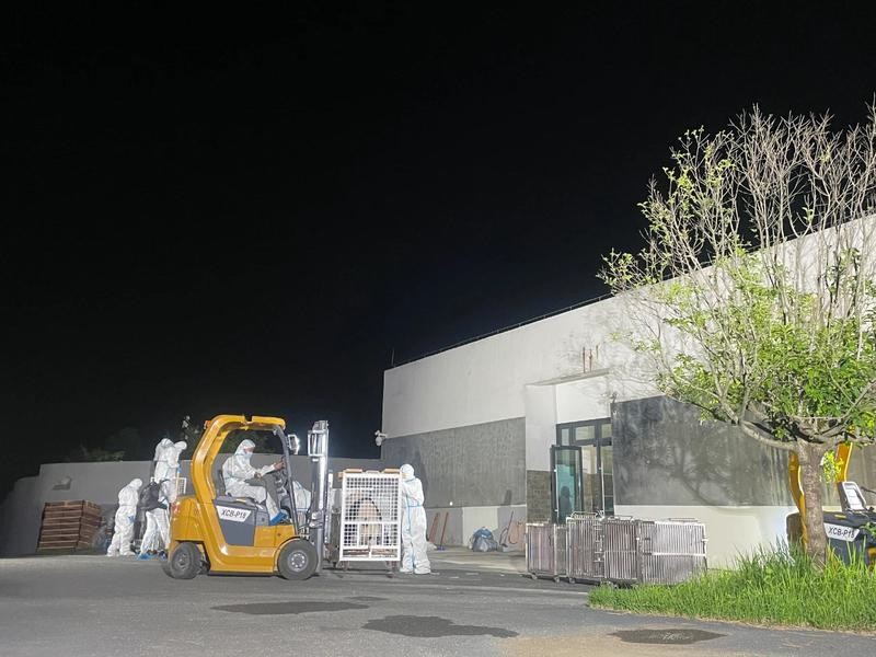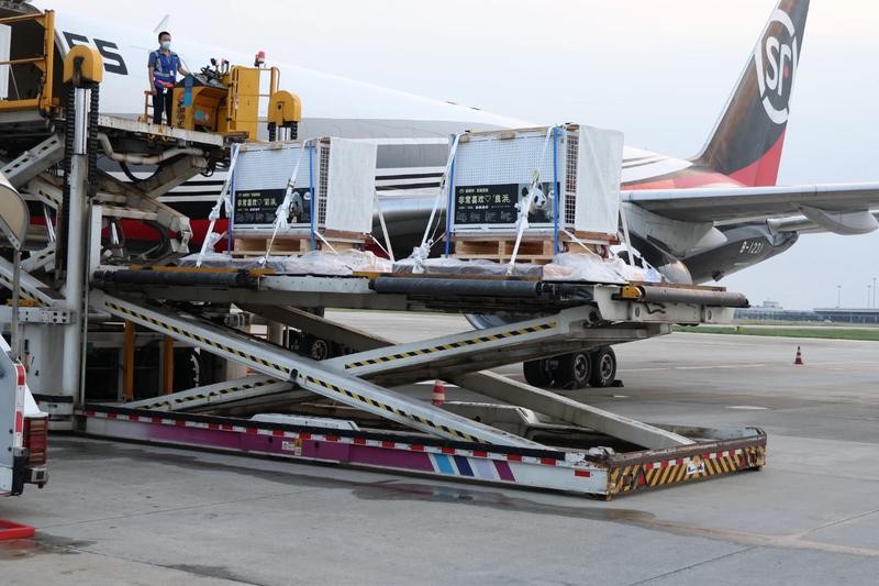 6月28日,在成都雙流國際機場,工作人員轉運大熊貓“良浜”“彩浜”。新華社照片