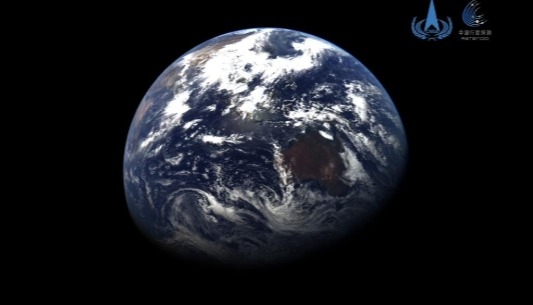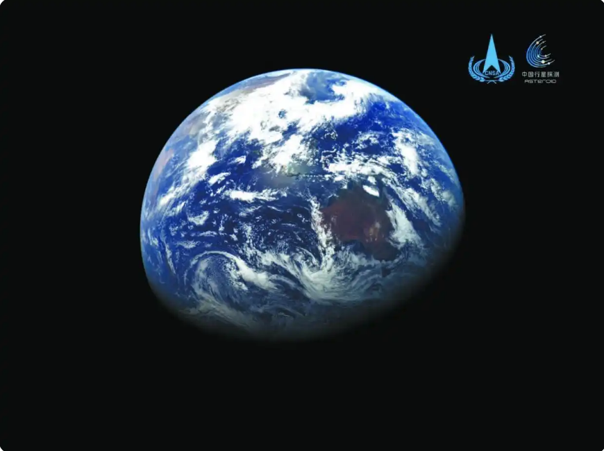 天問二號距離約59萬公里時拍攝的地球影像圖