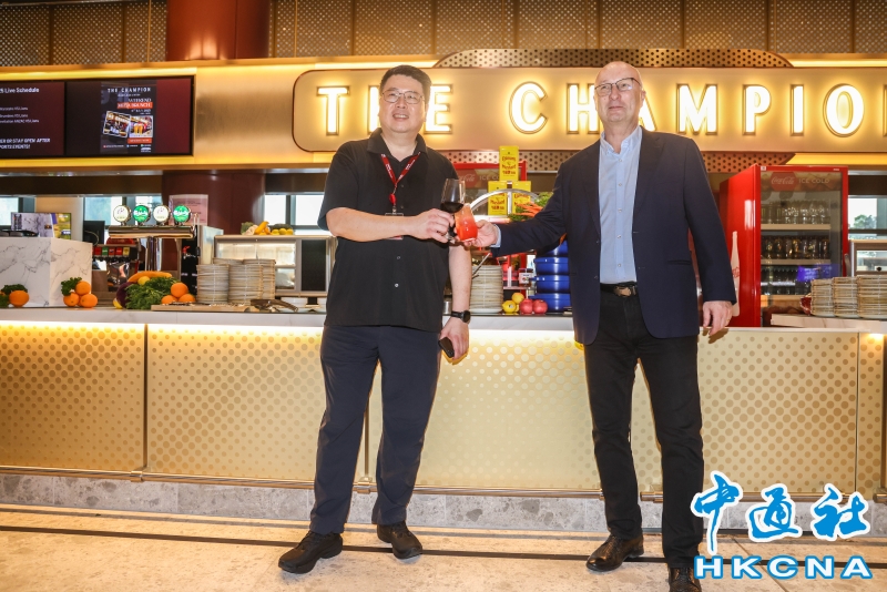 位於香港啟德主場館二樓東大廳的運動酒吧“The Champion”,將於7月5日正式開幕。“The Champion”靈感來自前啟德機場,設計以金色為主調,象徵著金牌的榮耀,配以特色條紋玻璃和舊式航班信息翻頁顯示板的裝飾。“The Champion”的運動酒吧吧枱雙面設計長約100 米,配備64個啤酒龍頭,供應9款精選啤酒和2款招牌特色雞尾酒;酒吧配備12個全天候控溫啤酒庫存,最多可儲存1800桶共約54000公升啤酒;同時提供多種娛樂設施,包括8條電子飛鏢賽道、2張美式桌球枱及2張桌上足球機,7月底將新增2部一級方程式模擬駕駛器,為賽車迷帶來沉浸式體驗。(香港中通社記者 曹文毓攝) 香港中通社圖片