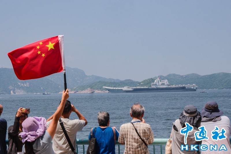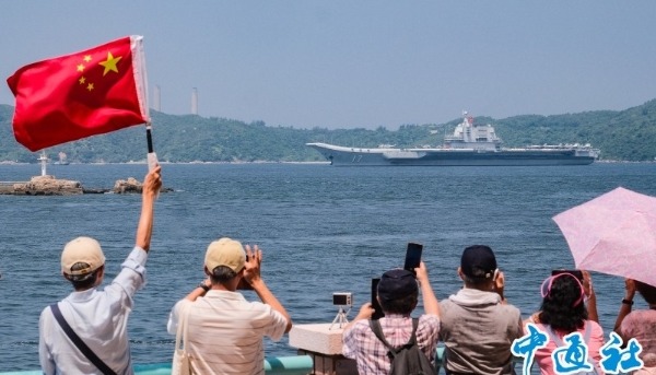 7月7日,中國人民解放軍海軍山東艦航母編隊離開香港,結束為期5天的訪港行程。圖為大批市民到海怡半島海濱送別山東艦。(香港中通社記者 許其皓攝) 香港中通社圖片 特區政府早上10時舉行歡送儀式,香港市民和青少年學生代表在昂船洲軍營碼頭,歡送湛江艦和運城艦艦。繁忙的維多利亞港,山東艦、延安艦相繼起錨,桅杆上升起旗語為“感謝大家關懷”“為人民服務”的信號旗。 記者在香港南邊的海怡半島,看到大批市民早早等候歡送“國之重器”。 “我們不會再被別人欺負了!”7日上午,揮著中國國旗在香港島南邊海濱為山東艦航母編隊送行的林太太說。 林太太和先生橫跨半個香港,揮舞的國旗與蔚藍的大海遙遙呼應。“我覺得帶著國旗,艦上的士兵看到,他們應該會很開心。”林太太興奮表示:“這一次山東艦編隊訪港,是香港人的榮幸”。 縱然當日烈日當空,但難掩市民的熱情。來自上海的旅客張先生說:“之前只是遠眺過,沒有這麼近。”他在山東艦進入維港的時候已經觀賞過一次,但這次停靠戰機一側正對海岸,讓他更為激動。而他此次訪港的目的正是為了一睹山東艦航母編隊的風採。 香港市民陳先生表示,他對國防軍事十分感興趣,“軍艦每次都會看”,但因工作錯過了進港,因此這兩天在香港不同的地方,嘗試欣賞山東艦的英姿。 在數碼港海濱花園,記者看到不少媒體和市民扛著專業器材,在海邊遠遠歡送山東艦。有小朋友戴著印有艦隊編號的帽子,非常雀躍地拿著望遠鏡連呼“哇哇哇”。 山東艦是中國第一艘完全自主設計、自主建造、自主配套的航空母艦,2019年12月正式入列。此次編隊首次開放參觀來到香港,共有超過3萬名香港市民、青少年學生及各界愛國人士登上大國重器與海軍官兵親切互動交流。 連日來,市民遊客在全港各地,以爬山、遊船、乘車過青馬大橋等方式,全城追艦。(完) 【編輯:梁嘉軒】