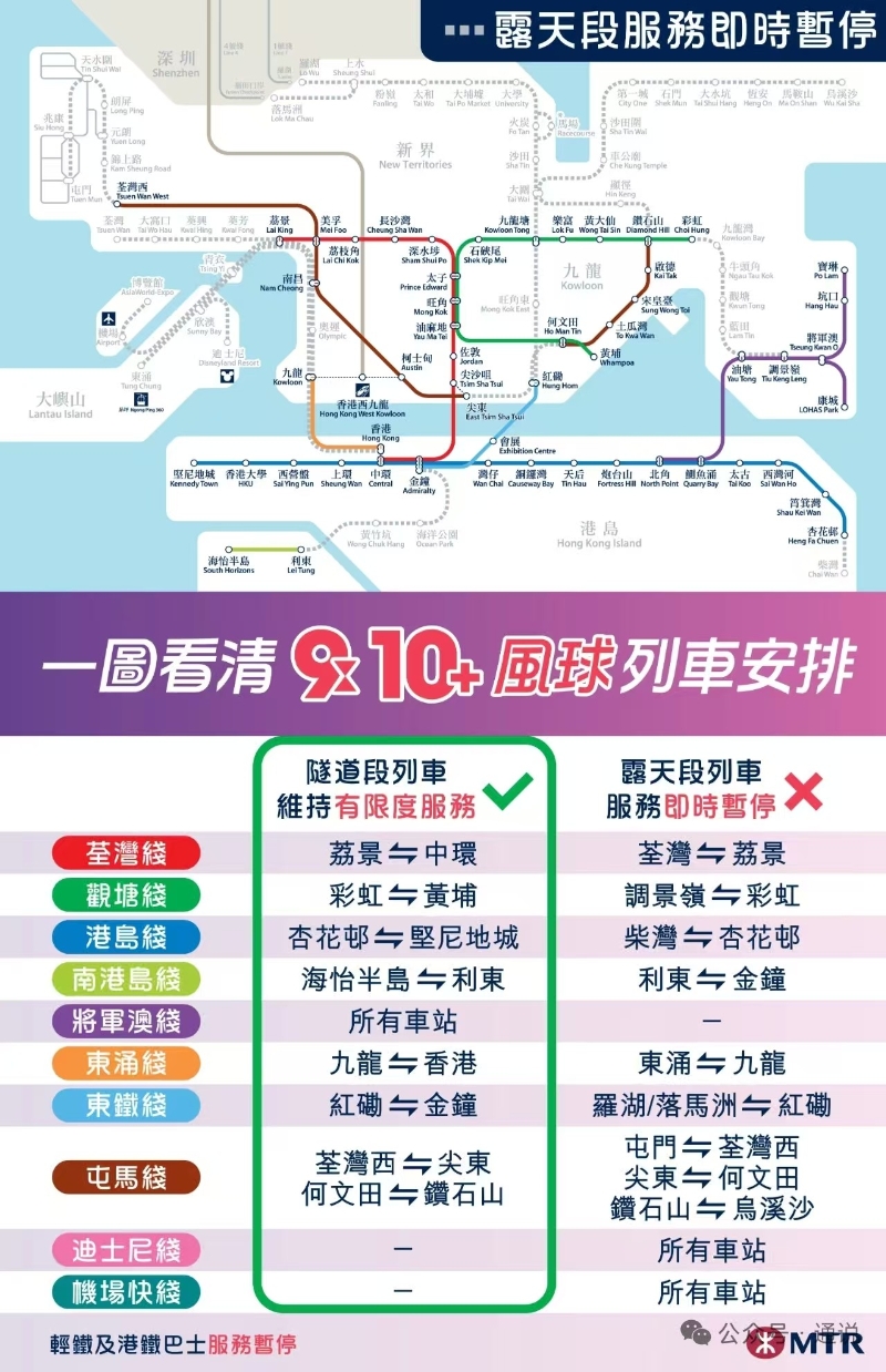 9號或10號風球生效期間,海陸空交通停擺、學校停課。電視台在機場採訪時,一位旅客稱沒有交通工具返回深圳,的士司機普遍不願接載,即使願意亦要求額外加收二百港元,質疑政府是否有批准這類附加費,若沒有則涉嫌濫收費用。