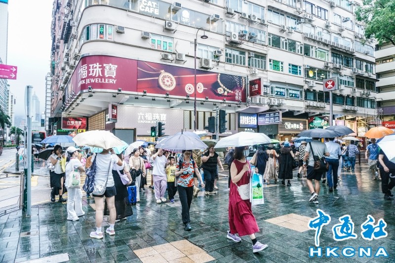 下雨的香港街頭。香港中通社資料圖