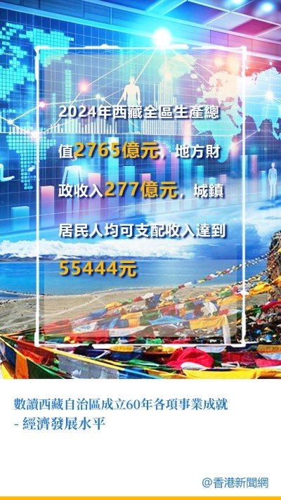 習近平出席西藏自治區成立60周年慶祝大會香港新聞網8月21日電 今年是西藏自治區成立60周年。21日上午,中國國家主席習近平與西藏各族各界約2萬人在拉薩市布達拉宮廣場出席西藏自治區成立60周年慶祝大會。 60年來,西藏各族人民以主人翁姿態積極參與管理國家和地方事務,充分行使憲法和法律賦予的自治權利,實現了西藏經濟社會跨越式發展,深刻改變了高原貧窮落後面貌。 西藏經濟60年來發展規模不斷擴大,發展的質量和效益明顯提升。在60年的發展歷程中,西藏地區生產總值達到第一個千億元用了50年時間,而達到第二個千億元僅用了6年,目前正向著第三個千億元目標奮進。 據中國國務院新聞辦公室日前發佈的數據顯示,60載風雨兼程,西藏自治區社會大局穩定向好,各項事業實現全方位、歷史性跨越。從經濟領域來看,2024年全區生產總值達2765億元,是1965年的155倍,地方財政收入增長至1258倍;民生福祉也顯著提升,城鄉居民收入大幅增長,脫貧攻堅全面勝利,15年公費教育率先推行,人均預期壽命躍升至72.5歲。 一、經濟發展與基礎設施