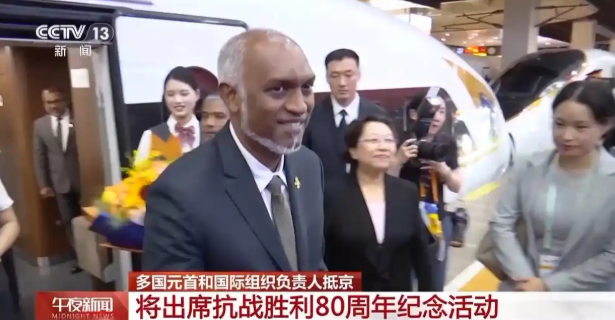 圖源:央視。 1日晚上,馬爾代夫總統穆伊茲乘高鐵抵達北京,此前,穆伊茲總統應邀出席在天津舉行的上合組織峰會。中國和馬爾代夫是傳統友好近鄰,兩國人民通過古代海上絲綢之路建立友好聯繫。近年來,兩國關係深入發展,共建“一帶一路”和各領域交流合作取得豐碩成果。 當晚,同時抵京的還有亞信秘書長薩雷拜、亞投行行長金立群。 據央視消息,9月1日和9月2日兩天,十多位外國國家元首、政府首腦及國際組織負責人會陸續乘坐高鐵從天津抵達北京,出席中國人民抗日戰爭暨世界反法西斯戰爭勝利80周年紀念活動。(完) 【編輯:錢林霞】
