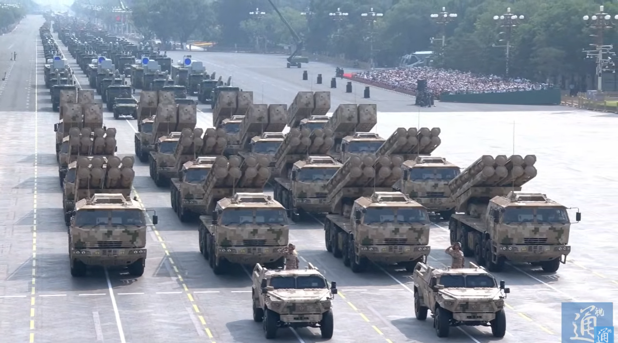 【北京時間10:02】 遠程火炮方隊駛過天安門廣場。受閱的兩型191遠程箱式火箭炮,集戰役打擊、戰術支援為一體,拓展陸戰能力新邊界。