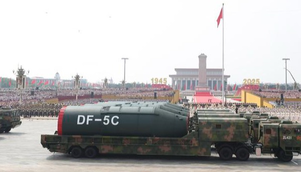 三位一體的核威懾體系現在更加全面,更加強大。而且這種戰略核威懾體系有的是在發射井當中,比如東風5,它的改進型是井基液體燃料洲際彈道導彈,射程非常遠。在閱兵解說過程中,大家已經知道它可以實現全球覆蓋。