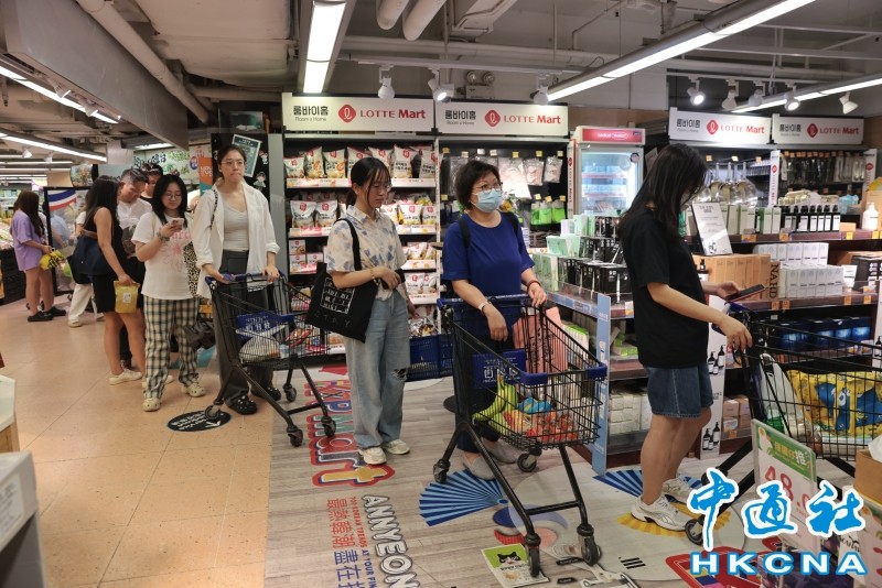 颱風天來襲,香港市民排隊採購。香港中通社圖片。 娛樂活動也暫時停止運營,維港上演的燈光表演“幻彩詠香江”取消;香港國際熱氣球節亦取消7日黃昏時段的活動及音樂祭,確保所有觀眾、表演者及工作人員的安全。 在香港南區的商場,大部分餐廳晚市較為淡靜,有中式餐廳職員告訴記者,因應風球,將提早兩小時結束營業。記者見到不少市民正在超市購物,準備“囤貨”在家渡過風球,超市內肉蛋菜供應充足。地鐵列車上,擠滿周末外出的市民、提早下班的打工仔。 市民吳先生認為預先通知風球維持時間十分貼心,教育局也提前宣佈8日所有日校停課,令市民有所準備,可以安排子女在家的活動。 香港特區政府各部門提前部署,民政事務總署緊急事故熱線開始運作,供市民查詢。各區民政事務處提早在晚上7時20分起開放共29個臨時庇護中心供有需要市民入住。 高鐵列車大部分維持正常服務。巴士服務至晚上11時20分,所有深宵及通宵路線暫停服務。香港勞工處提醒僱主,應盡早訂明僱員在熱帶氣旋、暴雨警告及極端情況下的工作安排,優先考慮僱員安全。(完) 【編輯:李濼】