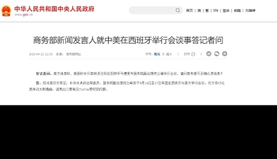 香港中通社9月15日電 中美雙方當地時間14日在西班牙馬德里就有關經貿問題舉行會談。據北京官媒報道,雙方討論議題包括美單邊關稅措施、濫用出口管制及TikTok等。