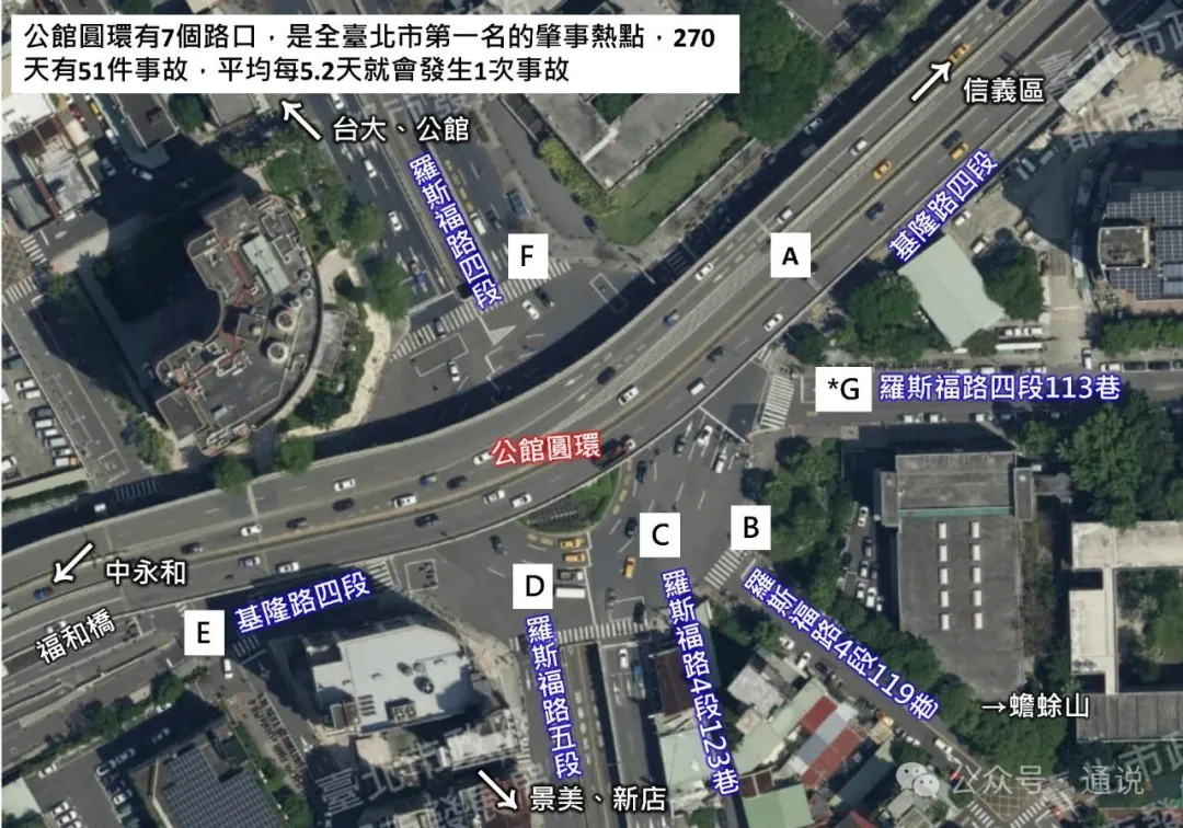 (台北市議員苗博雅直播截圖) 原來竟只是因為蔣萬安要“將位於台北市羅斯福路和基隆路交叉的公館圓環拆除,并填平公交車專用地下道,恢復成垂直正交路口”這麼一件事。 蔣萬安為什麼要拆掉這個公館圓環?最大原因之一應該是因為不安全。這個公館圓環有7個路口交會,是台北市南區重要的交通匯流點,尖峰時間的交通量位居台北市第一名,肇事率也連續7年穩居全市第一。根據台北市政府統計,這裡平均每1.5天就會發生一起車禍。蔣萬安也不是第一個提出要拆除圓環的人。 公館圓環從1967年落成後,就曾先後5次有人提出過要“拆除”。但做過存廢的評估後均認為若要鏟平圓環,下方的公交車專用地下道、通風井與自來水箱涵等結構問題無法解決,如果大興土木強化結構,勢必會讓該路口陷入長期的交通黑暗期,因此一直維持現狀至今,直到今年3月蔣萬安拍板“拆除”。台北市政府提出用填平公交車道并將平面成正交路口的方案,既安全又保障流量效率。
