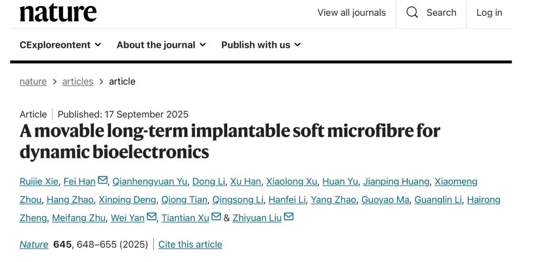 國際學術期刊《自然》17日發表了名為 “神經蠕蟲”(NeuroWorm)的新型神經纖維電極科研成果。 這款名為 “神經蠕蟲”(NeuroWorm)的新型神經纖維電極,直徑僅196微米,這根纖細的神經纖維電極沿軸向集成了多達60個獨立的生物電信號采集通道。 “神經蠕蟲”如頭髮絲般纖細、柔軟可拉伸,是可自由驅動的神經纖維電極。據快科技報道,在腦機接口等神經接口系統中,電極是連接電子設備和生物神經系統的核心界面傳感器,是腦機接口中“接口”的核心所在。然而,當前植入式電極均為“靜態”的,植入後只能固定位置、局限采集,還易因免疫反應失效,一定程度上制約了腦機接口的應用和未來發展。而“神經蠕蟲”的誕生打破了這一局限。 該研究首次提出了腦機接口“動態電極”的新範式,打破了植入式電極的“靜態”傳統,為腦機接口電極的研究與應用開闢了新方向。