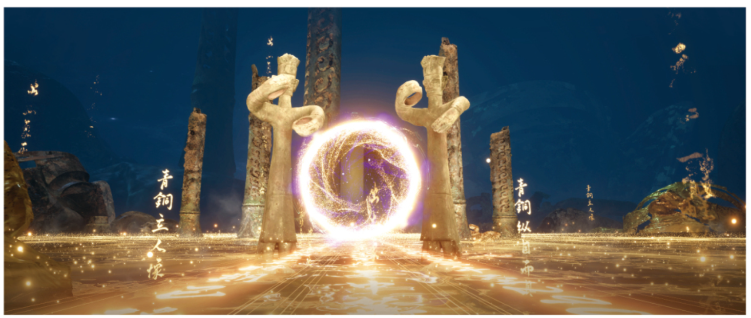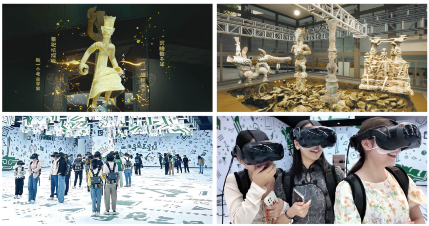 尋覓三星堆VR體驗 是次特展不僅限於大眾熟悉的靜態展出模式,更融入VR體驗和多種互動裝置,讓不同年齡層觀眾皆可“親身”感受古蜀文化的魅力,深入了解箇中歷史變遷。展覽最大的亮點在“尋覓三星堆VR體驗”。公眾進入VR體驗部分,彷彿穿越時空步入遺址,在沉浸式體驗中揭開三星堆的神秘面紗,親歷考古發掘過程,縱覽三星堆博物館與遺址全貌。 整個VR體驗時長約三十分鐘,包含四個精心設計的場景:“青銅之路”呈現巨大化青銅大立人和金面具等珍貴文物,讓參加者了解三星堆的歷史與文化。在“博物館奇妙夜”中,“活”起來的青銅大立人會帶領觀眾俯瞰三星堆遺址與園區,接着通過“祭祀坑探秘”,深入了解考古過程和研究成果,最後於“飛躍三星堆遺址”內,駕駛黃金面具穿越虛擬歷史場景,感受三星堆的歷史變遷。VR體驗融合知識性、互動性與沉浸感,為參加者帶來一場難忘的文化之旅。