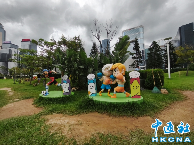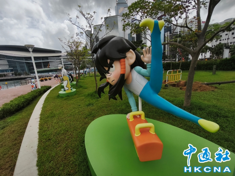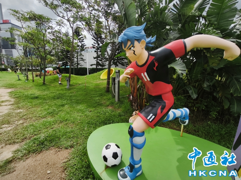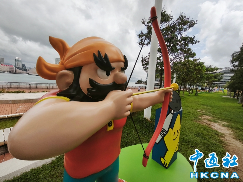 9月28日,動漫體育大本營內運動融入各動漫角色。在文創產業發展處的資助下,香港動漫畫聯合會於去年7月在灣仔海濱花園設置“動漫體育大本營”,展示不同年代的本地原創動漫角色,並介紹不同風格的動漫創作人,藉此向各位推廣香港動漫文化,為香港增添一個地標性的旅遊景點。同時為配合2024年的巴黎奧運及2025年的全國運動會,也將多項運動融入各動漫角色設計中。 (香港中通社記者洪少葵攝)香港中通社圖片