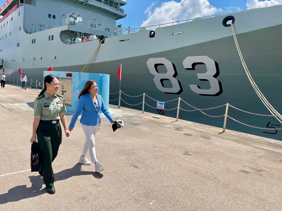 圖源:羅淑佩FB 戚繼光艦和沂蒙山艦,昨日(10月2日)繼續開放予已預約的香港市民參觀。戚繼光艦上搭載了很多先進的設備,除供學習使用的觀測儀器外,亦有“真槍實彈”。一把口徑12.7毫米的機關槍,射程達6000至7000米,不少參觀人士都“上手”試試。 海軍潛艇學院學員李春良也向參觀人士分享說,“感覺最炫酷的事,就是每天上午的時候,穿上我們的救生衣,戴上墨鏡,然後拿起六分儀,觀測太陽高度,在海上乘風破浪。” 首次訪港的海軍潛艇學院學員駱嘉毅則透露,自己從小就受香港文化影響,很喜歡看無綫的電視劇、電影,也非常喜歡周星馳的電影。 香港學生楊小姐表示,第一次參觀軍艦,心情非常激動,被科技、被力量所震撼,覺得特別自豪。香港市民余先生說,此次登艦大開眼界,希望再有軍艦來港,多開放給市民看。 這兩日,也有香港家長帶子女入場,希望小朋友感受國家的軍事實力。也有港人動情地說,有強大的國防軍隊,就一定能國泰民安,沒有其他國家敢欺負我們。 “我們站在甲板上,好熱,但他們可能是365日都站在那裡。”還有參觀人士稱讚海軍精神令人敬佩。 來自廣東的海軍學員表示,與香港市民交流期間感到親切。 據悉,東江縱隊老戰士也獲邀登艦,一睹國之重器的風采。 香港文化體育及旅遊局局長羅淑佩也把握機會登艦參觀,她稱“很開心,我第一次上軍艦。”羅淑佩相信未來會有更多軍艦訪港,將視乎情況,和旅遊業界商量相關安排。 羅淑佩其後也在社交媒體上發文分享登艦感受。她表示,非常興奮能夠踏上被譽為“海軍軍官搖籃”的戚繼光艦和東部戰區海軍列裝的第一艘新型綜合登陸艦沂蒙山艦參觀。 羅淑佩稱,觀看九三閱兵後深深感受到中國是和平之邦,強調只有國家強大、軍力堅強才可以保護國土不受侵略。閱兵展出的國產現役主戰裝備,不僅宣示國家新時代國防和軍隊建設的成就,更向世界宣示了中國人民銘記歷史、珍愛和平,堅決捍衛中國人民抗日戰爭和世界反法西斯戰爭勝利成果。 她表示,衷心感謝中央對香港的厚愛,讓不同軍艦訪港供市民近距離參觀,使市民加深對解放軍,特別是海軍的認識和感情,自豪感和愛國精神更油然而生! 戚繼光艦、沂蒙山艦於10月1日及2日在昂船洲軍營開放市民登艦參觀,共發放參觀票1.1萬張,首幾輪門票迅被搶光。今日,戚繼光艦及沂蒙山艦完成在港對外開放活動離港,兩艦隨後將訪問柬埔寨、泰國、新加坡。(完) 【編輯:劉春】