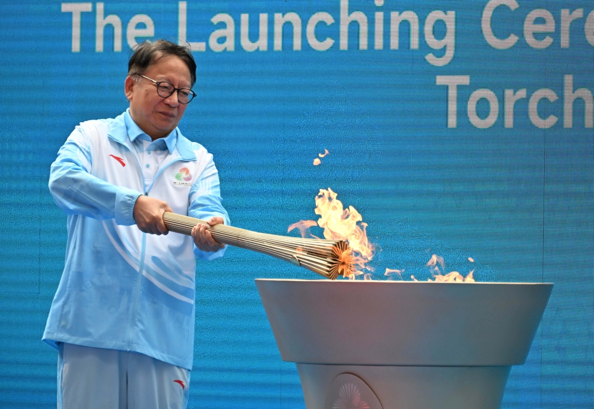 十五運會火炬傳遞香港站起跑儀式在香港特區政府總部舉行。
