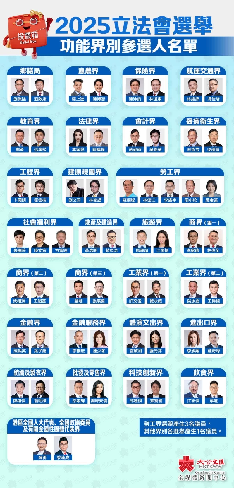 香港中通社資料圖 從目前的提名情況來看,三個界別90個議席呈現全競爭局面:地區直選接獲51份提名、功能界別接獲60份提名、選舉委員會界別接獲50份提名。 其中,由選民直接選出的地區議席競爭最為激烈,10個選區有9個呈現“5爭2”局面,九龍中更有6人競爭2個席位。參選名單顯示,既有資深的政黨政團參選,也有不少獨立參選人競逐,更有區議員等深耕地區的人士,決心從服務地區轉向服務全社會。 由各功能界別選民選出的28個功能界別中,26個為兩人爭一席,社福界競爭最激烈,有3人參選,勞工界3個議席有5人報名參選。選舉委員會界別則共有50人爭奪40個議席。