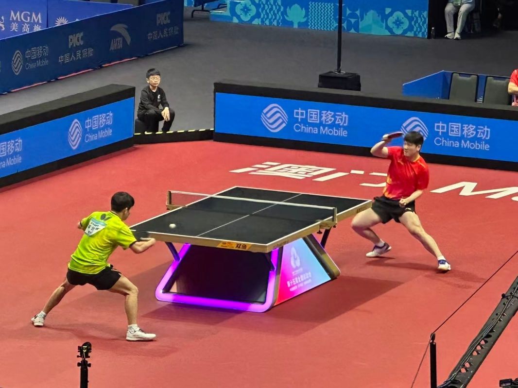 香港新聞網澳門11月16日電(記者 陳卓儀)十五運會乒乓球項目男子單打決賽16日在澳門銀河綜藝館舉行,來自上海的樊振東以大比分4:1贏得海南隊的林詩棟,奪得冠軍。同日舉行的銅牌賽由北京隊的王楚欽勝出。