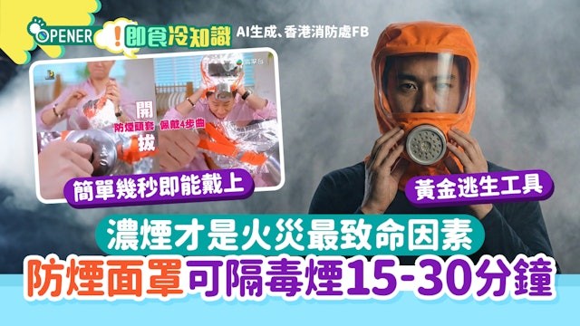 火災濃煙致命率遠高於燒傷 防煙面罩可提供30分逃生時間香港新聞網12月6日電 大埔宏福苑火災造成傷亡慘重,這次災難亦令大家提高了防災逃生意識。不少家庭都可能備有小型的家用滅火器、防火毯,但其實防煙面罩也相當重要,因為濃煙比火焰更加易致命。但究竟防煙面罩要怎樣揀選?它是怎樣發揮效用?價格又如何? 根據香港消防處指出,火災中大多數死亡個案都是由濃煙或氣體窒息所致。 美國消防協會(NFPA) 也有類似統計,指火災死亡案例中,吸入濃煙(Smoke Inhalation)是導致死亡的首要原因。而美國消防署(USFA) 的報告更具體指出,在住宅火災中,89% 的死亡案例均涉及熱燒傷或煙霧吸入,其中單純因吸入濃煙致死的比例遠高於單純被火燒死。濃煙內含劇毒氣體,一旦吸入,可能會導致呼吸困難、意識模糊等徵狀。所以防煙面罩是火場中爭取黃金逃生時間的關鍵防護裝置。 防煙面罩用途市面上買到的防煙面罩,主要由耐高溫罩體和高效濾片/濾罐兩大部分組成,設計都較為輕便。罩體材質可以抵禦高溫,內部的濾網能夠過濾火場濃煙中產生的一氧化碳等有毒氣體。 防煙面罩能在火警期間提供15至30分鐘的乾淨空氣和清晰視野,幫助使用者保持清醒,沿逃生路線撤離,或安全地留在單位內等待消防救援。 雖然工業用防護面罩也可以過濾顆粒物,但材質多不耐高溫,功效遠不如專業防煙面罩。不過,如果如果緊急情況下沒有專業裝備在身邊,工業防護面罩亦可作為應急之選。 防煙面罩使用四步曲香港消防處先前聯同無綫製作短片中亦有教導市民如何正確使用防煙頭套,總結為四字策略“開、拔、套、拉”。 開:撕開鋁箔包裝或打開盒蓋,取出面罩後將其撐開 拔:拔開濾氣閥蓋 套:確保濾片面朝前,將面罩從頭頂向下罩住整個頭部和臉部 調整密合:調整口鼻位置,拉緊面罩帶,確保邊緣貼合,防止濃煙滲入
