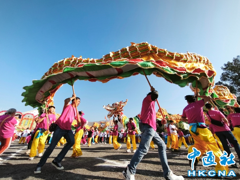 12月16日,香港新界廈村鄉羅屋金龍起舞,眾鄉親啟程趕赴錦田參加“錦田鄉酬恩建醮”。據悉,錦田傳統活動“錦田鄉酬恩建醮”是香港歷史最悠久的太平清醮之一。據說300多年前,清朝兩廣總督周有德和王來任協助沿海居民復界,讓人民返鄉生活。為報答恩德,錦田鄉民在1684年興建周王二公書院教育子弟,並每10年舉行一次酬恩祭典,以答謝先賢、超渡遷界喪生的亡魂及祈福保佑境內居民。2025年錦田鄉酬恩建醮踏入第34屆在12月13日至19日舉行一系列傳統儀式和活動,如大士巡游、祈福儀式、粵劇大戲、龍獅表演、鄉鄰齋宴等等。 (香港中通社記者洪少葵攝) 香港中通社圖片
