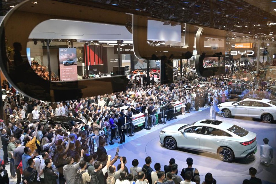 2024年5月4日,2024(第十八屆)北京國際汽車展覽會閉幕,參觀者在2024北京車展展台參觀。新華社記者 尹棟遜攝