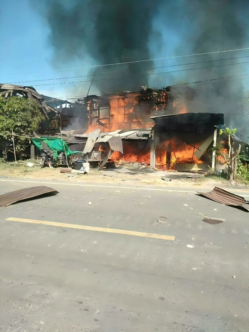 這張泰國軍方提供的照片顯示,12月13日,泰國四色菊府的一處民宅被火箭彈摧毀。新華社發(泰國軍方供圖)
