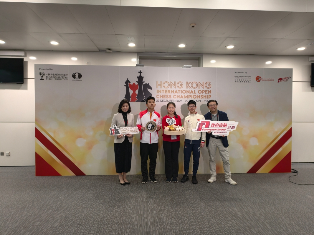 香港新聞網12月23日電 (記者 梁嘉軒)“2025香港國際象棋世界公開賽”23日於灣仔伊利沙伯體育館揭幕,賽事由中國香港國際象棋總會主辦,獲特區政府文化體育及旅遊局藝術及體育發展基金資助舉辦,並獲“戴麟趾爵士康樂基金”支持。