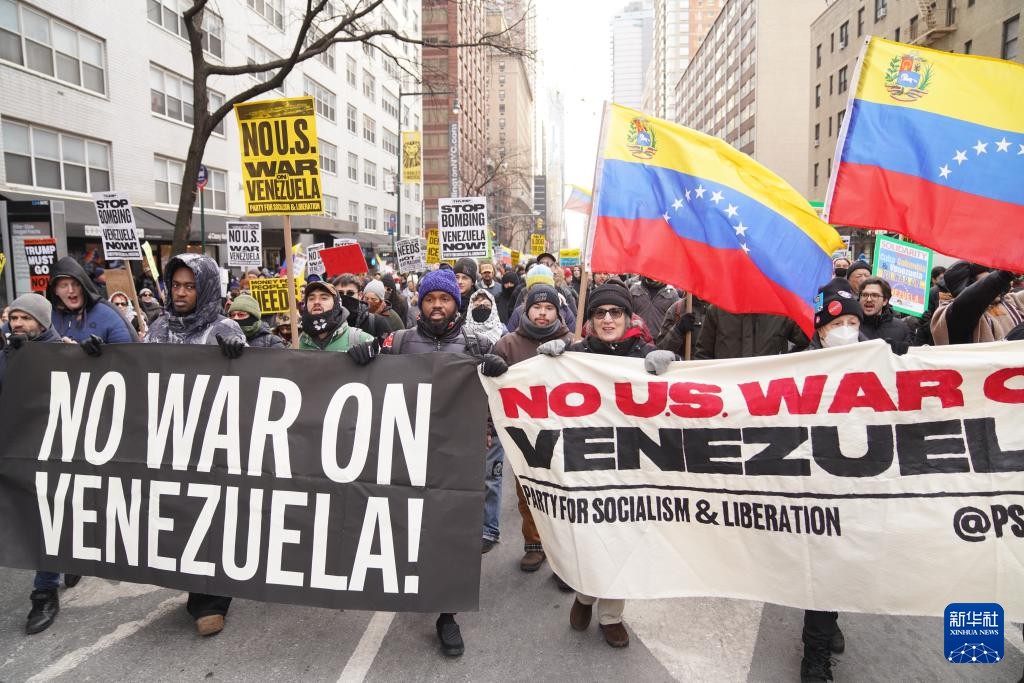 1月3日,在美國紐約,民眾參加抗議集會。新華社圖片 這些示威活動由反戰組織“即刻行動制止戰爭消除種族主義”聯盟發起,當天在包括華盛頓、洛杉磯、波士頓、亞特蘭大、芝加哥、丹佛、達拉斯、邁阿密等105個城市進行。 組織方發表聲明說,美國發動的戰爭將給委內瑞拉人民帶來死亡和毀滅。美國戰爭機器消耗大量納稅款,而工薪家庭卻在為生計苦苦掙扎。美國人民不想要另一場戰爭,對美國向委內瑞拉發動的戰爭說“不”。 3日下午,在紐約時報廣場,示威者高舉委內瑞拉國旗,手持寫著“保衛委內瑞拉,釋放馬杜羅”“不要插手委內瑞拉事務”“美國滾出加勒比”“反對向委內瑞拉開戰”“美國總統特朗普必須下台”等標語的橫幅,並高喊口號。 美軍於3日凌晨約2時對委內瑞拉發動大規模空襲,在首都加拉加斯市中心一座戒備森嚴的軍事堡壘,擒獲委內瑞拉總統馬杜羅夫婦,將他們帶到美國受審。《紐約時報》引述委內瑞拉官員指,當地最少有40人死亡,包括平民及軍方人員。報道又指,有美軍在行動中受傷,情況穩定。 特朗普其後舉行記者會,宣布美國會暫時治理委內瑞拉,直至有“安全、適當和明智”的過渡。他沒有透露會持續多久,只表示美國會一直在委內瑞拉,直至當地重回正軌,而國務卿魯比奧和國防部長赫格塞思等華府官員會協助委內瑞拉管治。 委內瑞拉最高法院3日命令副總統羅德里格斯擔任代理總統職位。羅德里格斯發表電視講話,譴責美國採取軍事行動,強調馬杜羅是國家唯一的總統,又稱委內瑞拉永遠不會成為任何國家的殖民地。(完) 【編輯:淩玉輝】