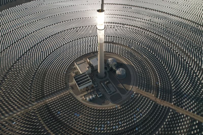 資料圖:2025年12月3日在甘肅省酒泉市拍攝的金塔多能互補基地10萬千瓦熔鹽塔式光熱項目(無人機照片)。新華社照片