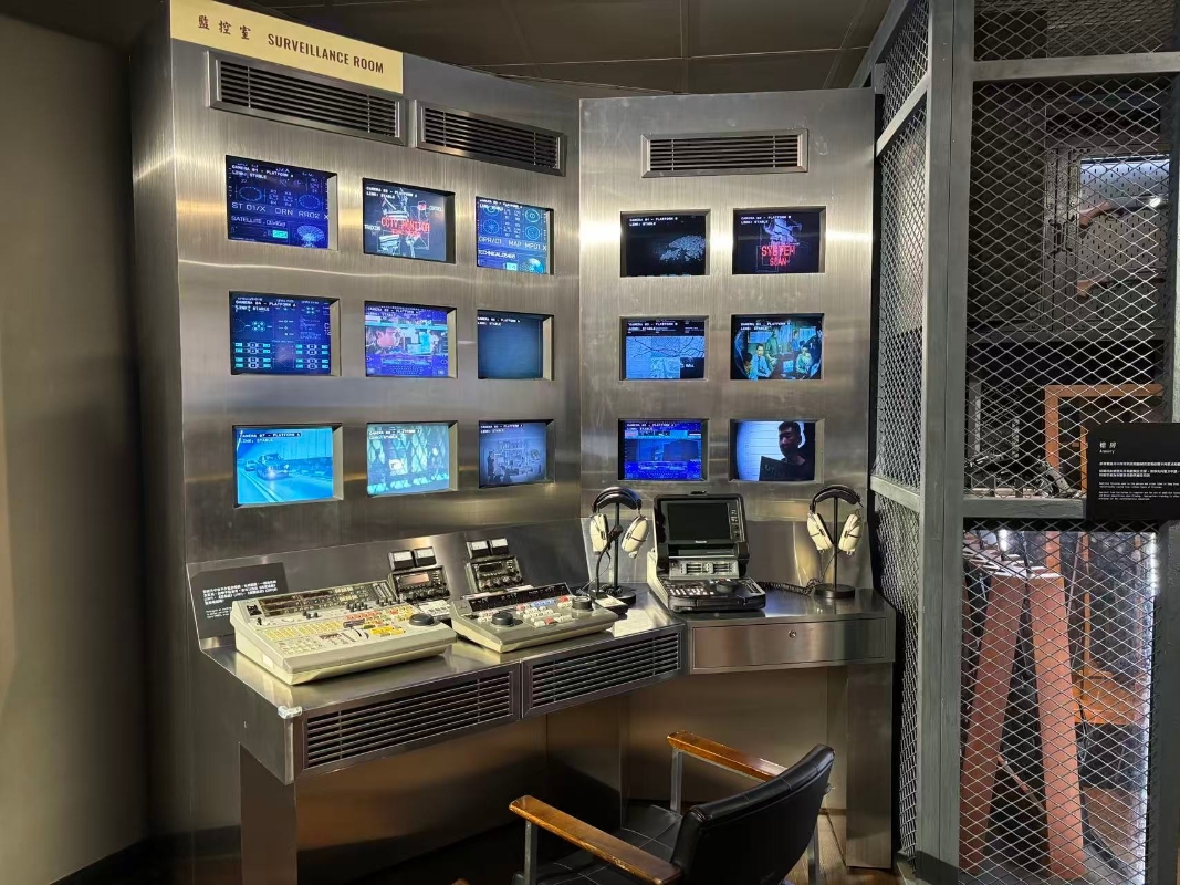 圖為展覽中的“監控室”。(香港中通社記者 黃璇攝)