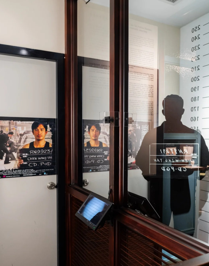 舊油麻地警署建於1922年,是香港現存少數的戰前警署之一。(香港中通社記者 黃璇攝) 展覽的巧思,在於讓歷史建築自己“開口說故事”。參觀者並非進入一個普通的博物館,而是踏上了一段沉浸式的時空旅程。入口被設計成懷舊戲院的模樣,仿佛在提醒你:好戲即將開場。穿過這道門,是一條短短3分鐘的“時光隧道”,《無間道》、《怒火》、《英雄本色》等經典片段的精華在此交織,用光影與聲效瞬間將人拉入槍林彈雨、正邪交鋒的戲劇張力之中。