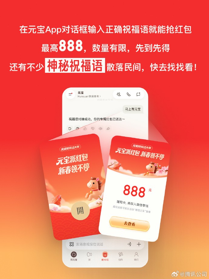 騰訊日前啟動其AI應用“元寶”的現金紅包活動。圖源:騰訊公司社媒賬號 綜合2日消息,騰訊日前啟動其AI應用“元寶”的“分10億”(人民幣,下同)現金紅包活動,用戶通過更新App並參與互動即可領取獎勵。活動上線後,“元寶派紅包”鏈接迅速在微信群廣泛傳播,推動該應用登上多個應用商店免費榜首位。騰訊方面表示,此舉旨在探索AI在社交場景中的深度應用,復用春節這一高活躍節點加速用戶增長。 百度則於1月26日啟動文心助手“5億元紅包計劃”,用戶在百度App內使用AI功能有機會獲得現金獎勵,單筆最高達6666元。同時,百度率先在國內主流AI產品中推出“多人多智能體”群聊功能,支持AI在家庭群等場景中自動識別謠言、提供健康建議等實用服務。 字節跳動依托旗下火山引擎成為今年央視春晚獨家AI雲合作夥伴,強化豆包AI的技術曝光;阿里巴巴則通過千問AI冠名地方衛視春晚,整合電商與生活服務資源推廣其AI助手。 據中國互聯網絡信息中心數據,截至去年6月,中國內地生成式AI用戶已達5.15億人,普及率36.5%。專家指出,盡管紅包激勵可帶來短期下載量激增,但如何將“嘗鮮用戶”轉化為長期使用者,仍取決於AI產品的實際效用與場景融合能力。當前,各大平台正通過群聊、內容生態和任務激勵等方式,探索從“流量獲取”向“價值留存”的轉型路徑。(完) 【編輯:彭玉婷】
