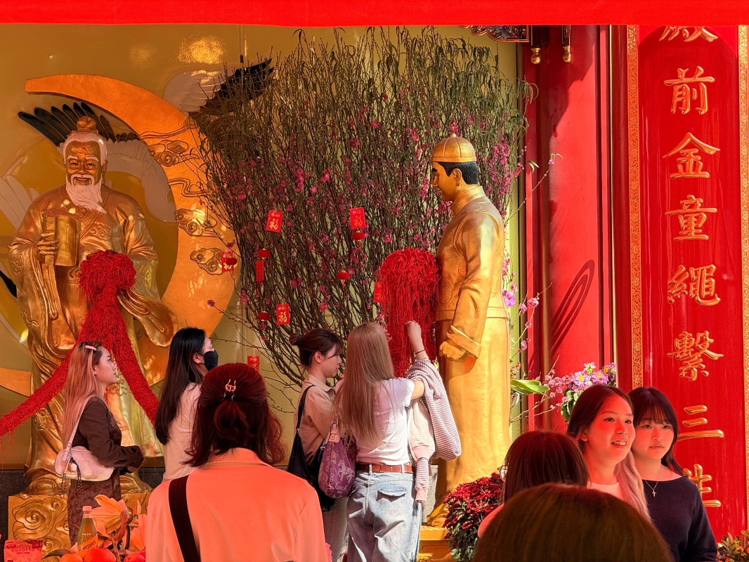 來自澳大利亞的夫妻特地將黃大仙祠作為景點之一,妻子Margot對記者表示,“聽聞中國的神仙是很靈的,跟丈夫結婚40周年,希望能相伴終生。”人群中,39歲的馮女士望著月老格外虔誠,她去年參拜後順利找到另一半,今天專程來還願,并跟記者笑道晚上會跟男友吃燭光晚餐。