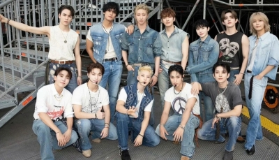香港中通社記者 陳卓儀攝 去年9月SEVENTEEN在啟德體育園主場館舉行兩場演唱會,全場爆滿,成員當時表示希望再次來港“安可”,願望成真重返啟德,吸引來自不同地方的粉絲到場支持。