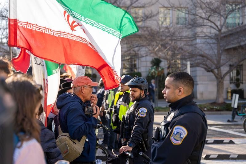 3月7日,人們在美國華盛頓參加集會,抗議美國和以色列對伊朗發動軍事打擊。圖源:新華社