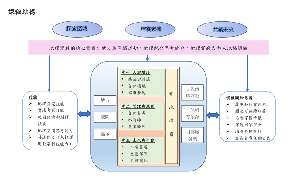 《地理科(中一至中三)課程框架》截圖 通告指出,此次修訂主要涉及四大具體方向,包括優化課程的設計模式、修訂的課程組織、更新學習內容,以及優化學與教策略。旨在幫助學生了解國家地理,欣賞祖國的壯麗河山,感悟祖國經濟、社會的發展成就,以及對人類社會可持續發展的貢獻,從而建立對國家的歸屬感和認同感;以及具備全球視野,明白國際合作的重要性,為國家和全球的福祉及可持續發展而作出貢獻等。 翻看《地理科(中一至中三)課程框架》,許多單元中都有國家元素。 以中一級的“區位與疆域”單元為例,學生需學習中國的區位、疆域,以及中國的省級行政區劃。認識中國的陸地範圍,包含中國大陸、沿海島嶼、南海諸島、釣魚島及其附屬島嶼。藉此了解中國的地理背景與區位優勢,充分認識到香港是中國的一個特別行政區,從而理解中國疆域遼闊及保衛國土的重要性,增強維護國家統一與領土完整的意識。 中二級的“水資源”單元,學生需了解中國華北地區水資源安全的現況及水資源管理的措施,從而明白保障、妥善管理與運用中國水資源是關乎國家安全(例如資源安全)的重要一環。“農業發展”單元,學生會學習中國主要的農業地區及影響它們分布的因素,從而了解中國改善農業生產及保障糧食供應穩定的方法,明白國家糧食安全的重要性。 中三級的“工業發展”單元,會通過工業的課題,讓學生初步了解中國是“工業超級大國”。並會透過新能源汽車工業的課題,讓學生關注稀土資源的安全對中國的科技發展和國家安全的重要性。