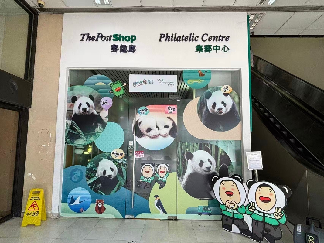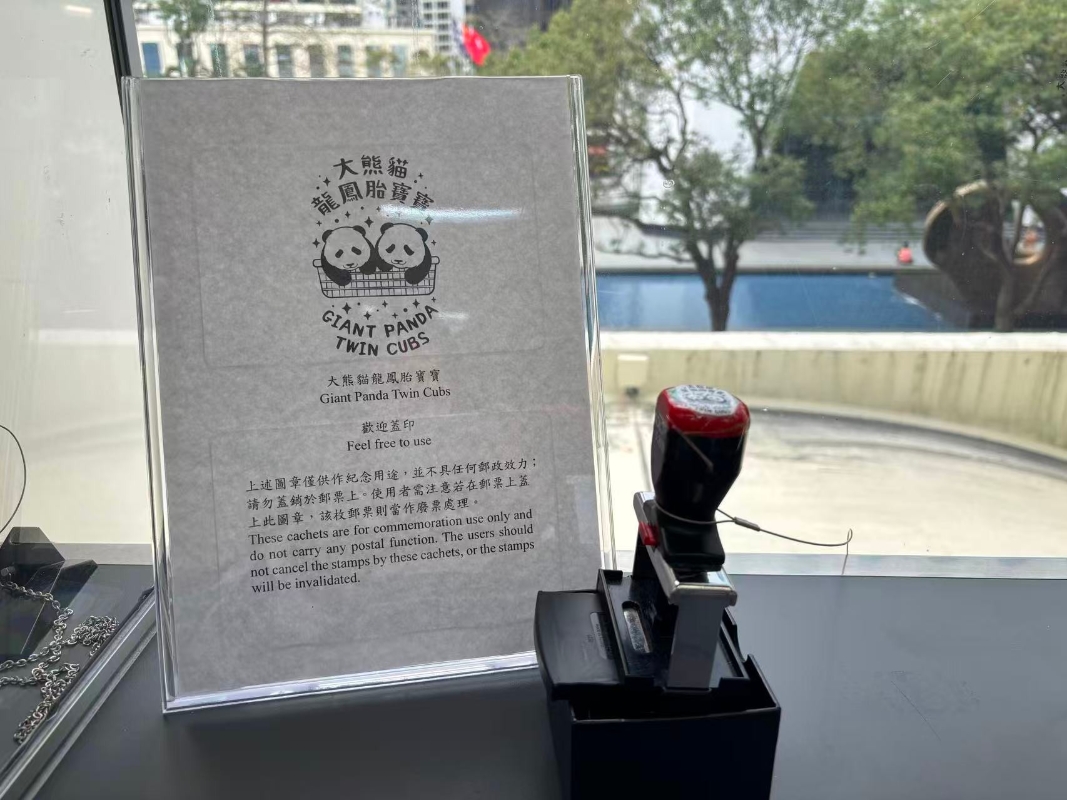 香港郵政特別推出“大熊貓龍鳳胎寶寶”紀念印供市民蓋印留念。(香港中通社記者 黃璇攝)