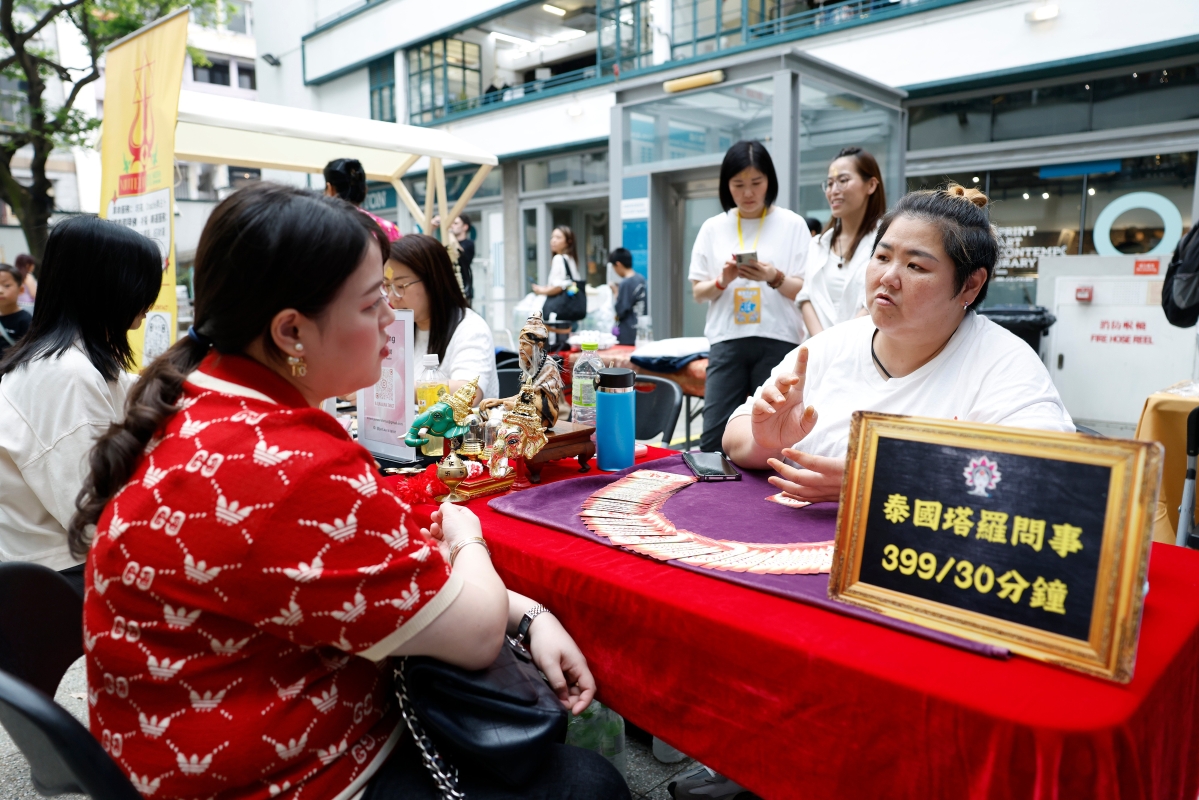 潑水節特色攤位吸引入場人士問事。