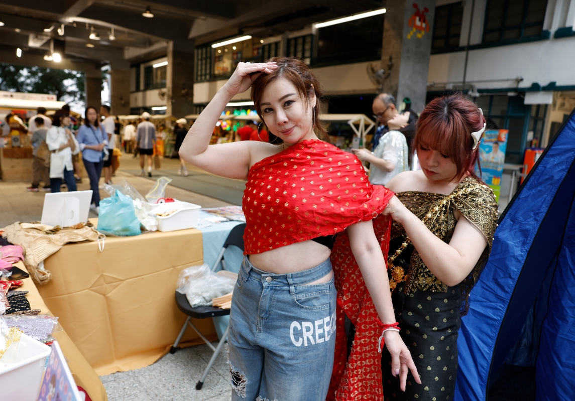 市民體驗泰國服飾。