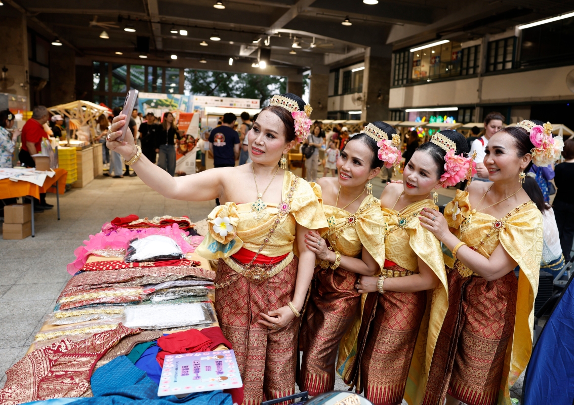 穿著泰國服飾的女士在自拍留念。