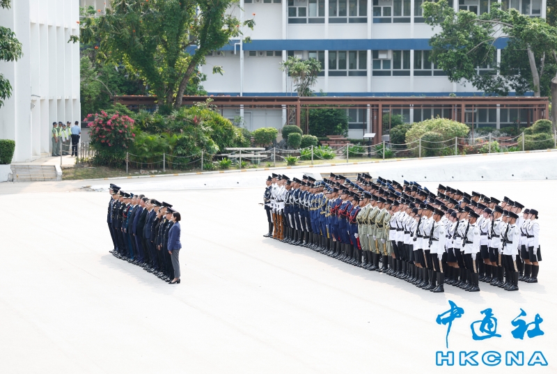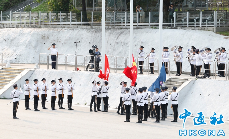 2026全民國安教育日|香港紀律部隊舉行升旗儀式 港警樂隊列“中國結”隊形