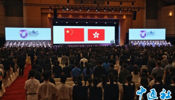 2026全民國安教育日|香港紀律部隊舉行升旗儀式 港警樂隊列“中國結”隊形