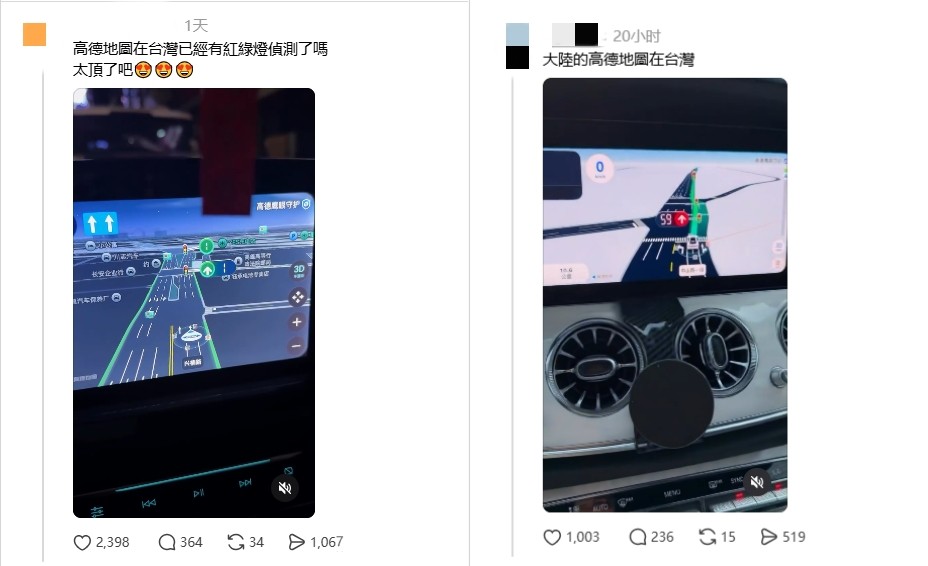 台灣網友發視頻熱議高德地圖上新功能。圖源自Threads