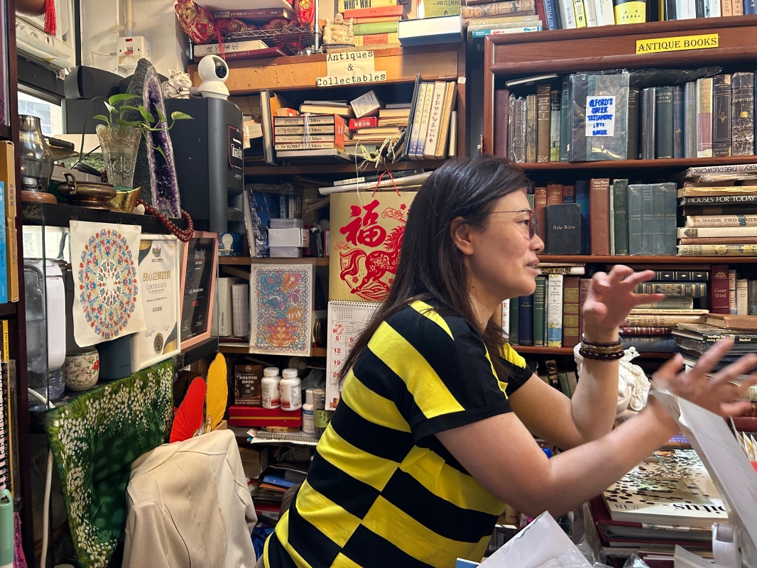 香港中通社4月22日電(香港中通社記者 徐嘉儀)在香港上環最繁忙的街道——皇后大道中,一家名為“莉莉書屋”的二手書店,靜靜窩在五條路交界處的舊唐樓二樓,俯視著車流與人潮日夜不息。愛書人得拐進昏暗的樓梯,才能尋得那片紙頁間的安寧。 店面不大,書卻從地板壘到天花板,密密匝匝,幾乎不浪費一寸空間。這裡沒有咖啡香,沒有網紅打卡牆,只有書卷特有的芬芳,和一位堅守書店夢20餘年的店長——莉莉。