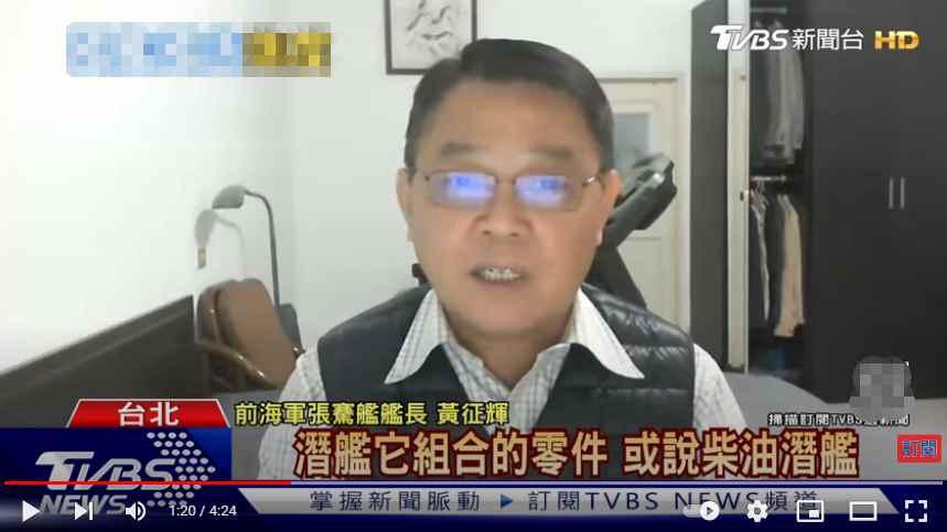 黃征輝 來源:視頻截圖 據台灣媒體TVBS報道,台灣海軍退役上校、前“張騫艦”艦長黃征輝接受台媒連線時表示,“導彈的組合零件大約是4000個,而潛艇組合的零件則多達35萬個,以35萬個來衡量,你想想看它會有多少個子計劃。如果台灣請7個國家幫忙造潛艇,誰負責,誰負總責,誰負責整合,都沒有。難道靠台船自己嗎,台船又沒有經驗。這就是潛艇自造最大的致命傷。”
